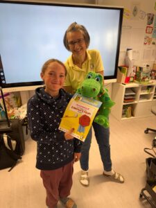 Am 13. und 14. April besuchte wieder Kroko, das Zahnputzkrokodil jede Klasse. Zuerst wurde Kroko mittels Kroko-Rap in die Klasse eingeladen. Wichtige Begriffe wurden wiederholt. Zum Schluss durften die Kinder ein Kreuzwort-Rätsel lösen. Auch der Besuch beim Zahnarzt wurde mit den Kindern besprochen. Für unsere Kinder der 4. Klassen war das der letzte Besuch. Alle bekamen von Kroko eine Urkunde überreicht.