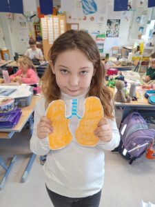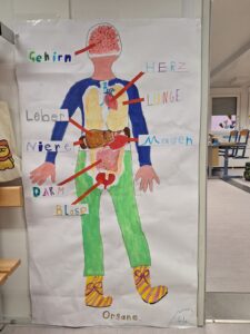 Anschließend haben die Kinder mehr über die Themen „Krankheit, Knochenbrüche, Organe, Atmung, Verdauung, Herzschlag und Puls messen“ erfahren.